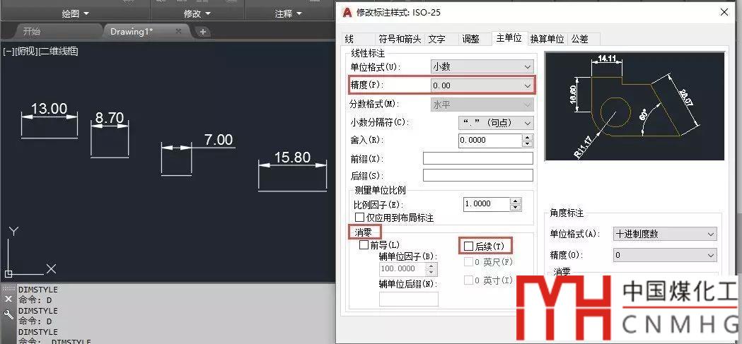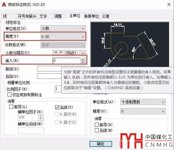 如果我們只是希望標(biāo)注進行正常的四舍五入,直接設(shè)置精度后的小數(shù)點的位數(shù)就可以了,假如我們希望標(biāo)注是整數(shù),可以將精度設(shè)置為0,如圖所示。