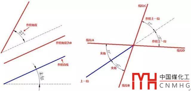 在一些圖紙或練習圖中,經(jīng)常會給出一些角度條件,有些給出的是跟X軸正向的夾角,有的則直接給出的是與相鄰線之間的夾角,如下圖所示。