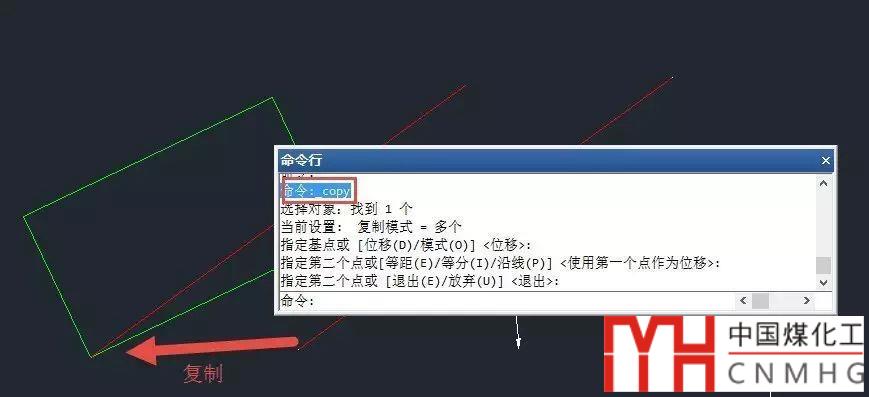 假設像上圖一樣,矩形和直線不在一起,但我們希望以矩形某個角點為基點進行旋轉,我們可以將傾斜的直線復制一條到矩形的角點處,如下圖所示。