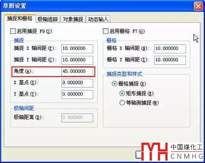 雖然現(xiàn)在柵格設(shè)置中沒有了捕捉角度的設(shè)置,但snapang設(shè)置還是有效的,可以直接輸入snapang,也可以再繪圖過程中輸入:’snapang來切換角度。