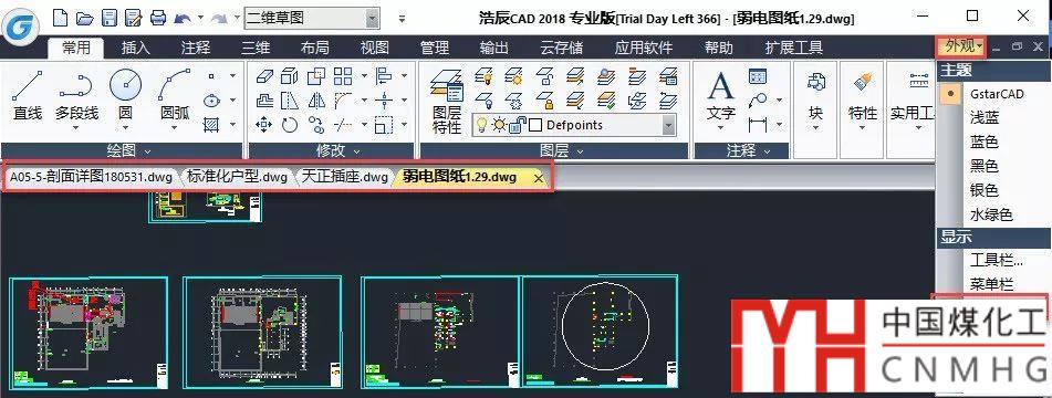 國產(chǎn)CAD比AUTOCAD更早就添加了文件選項(xiàng)卡,比如浩辰CAD的文件選項(xiàng)卡也可以在選項(xiàng)卡里開關(guān),還可以在外觀下拉菜單里設(shè)置,如下圖所示。