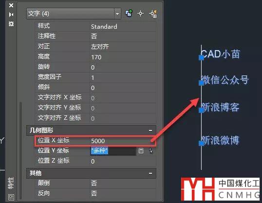 我們?cè)谖恢肵坐標(biāo)框中輸入5000,文字就跟直線對(duì)齊了,如下圖所示。