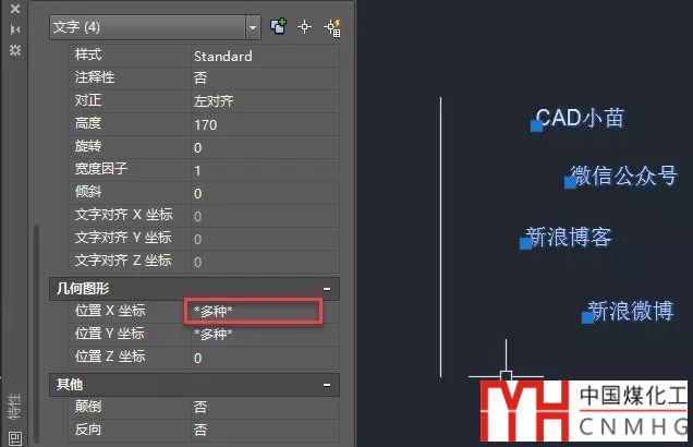 當(dāng)我們想將多個(gè)文字或類似的圖形沿X軸方向?qū)R的時(shí)候,我們可以將這些文字全部選中,然后將X坐標(biāo)修改成相同的數(shù)值。例如下面要將下面幾個(gè)文字左側(cè)跟豎線對(duì)齊,豎線的X坐標(biāo)是5000,選中幾個(gè)文字后,屬性框中X位置顯示“*多種*”,如下圖所示。