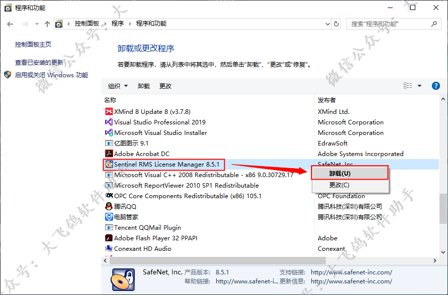 來到【控制面板】,點(diǎn)擊【卸載程序】,找到【Sentinel RMS License Manager8.5.1】,并卸載。