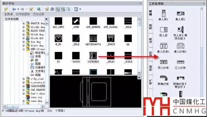 (5)可以在設(shè)計(jì)中心中選擇打開或未打開圖形中的圖塊,將這些圖塊拖動(dòng)到工具選項(xiàng)板中或右鍵創(chuàng)建新的工具選項(xiàng)板,如下圖所示: