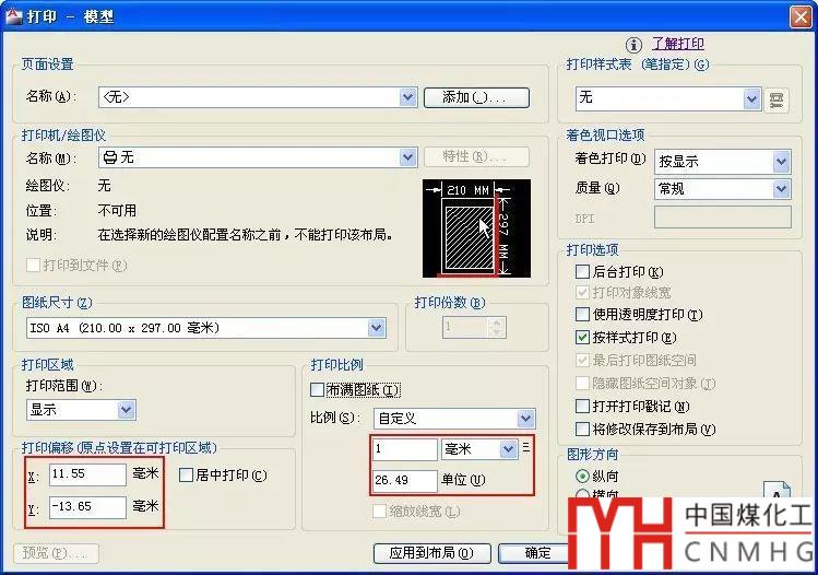 單位對話框雖然只是設(shè)置圖中顯示的長度、角度、光源的類型和精度,但特性面板(CTRL+1)和一些對話框中一些其他數(shù)值的顯示精度也會受單位對話框的控制,例如文字樣式對話框中的字高和寬度因子,特性面板中顯示的圖塊比例、視口比例等。但CAD中有些對話框中的參數(shù)的精度卻不受這個單位對話框設(shè)置的影響,例如標注樣式修改和打印設(shè)置對話框等。將長度精度單位設(shè)置成不保留小數(shù),但打印比例和偏移值仍可以顯示小數(shù)點后兩位,如下圖所示。
