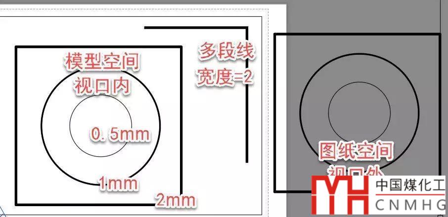 我準備了上面一張例圖,為了看清楚效果,我繪制了幾個簡單的圖形,線寬分別設置成2mm1mm