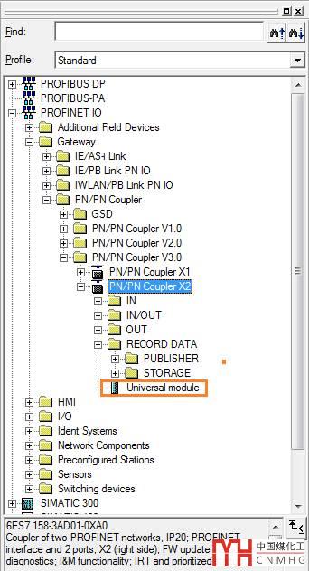 調(diào)試當(dāng)天,來了個(gè)挺帥的小伙子,我們定義好了通信的格式,就各自忙去了。過了一會(huì)兒,帥哥跑來告訴我,他無法組態(tài)PN/PN耦合器的Universal Module。我用疑惑的眼光看了他一眼,心想:不可能吧,我們經(jīng)常這么用啊。于是我把程序打開給他看下,我用的是Step7 V5.5,就是下面這張圖: