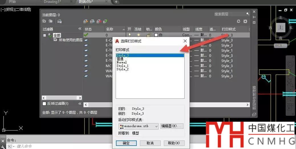 當(dāng)我們切換到使用STB文件后,我們再打開圖層管理器,單擊圖層后的打印樣式,就會彈出選擇樣式對話框,讓我們設(shè)置圖層使用的打印樣式了,如圖所示。