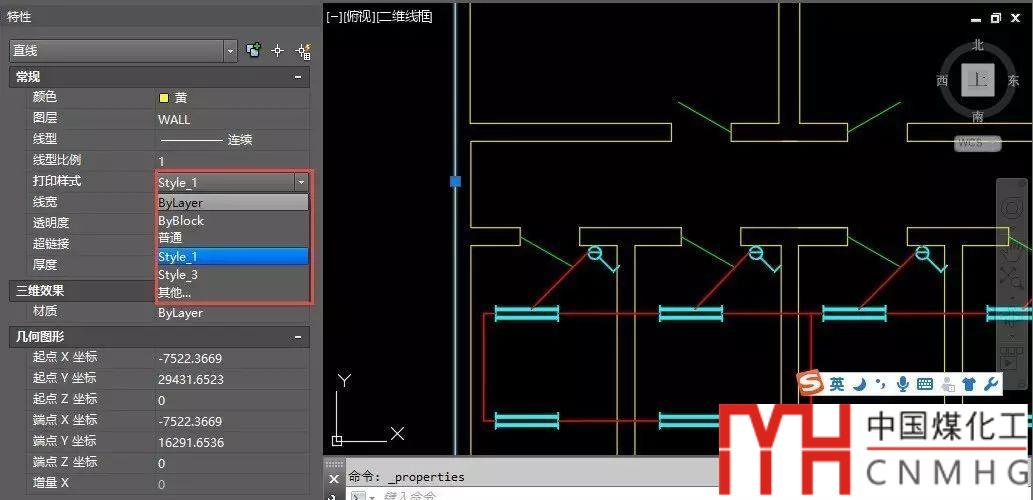 其實如果我們仔細觀察的話,我們會發(fā)現(xiàn)不僅圖層可以設(shè)置打印樣式,打印樣式還是每個圖形的基本屬性。選中一條直線,打開特性面板(CTRL+1),在常規(guī)屬性中就可以看到打印樣式,如圖所示。