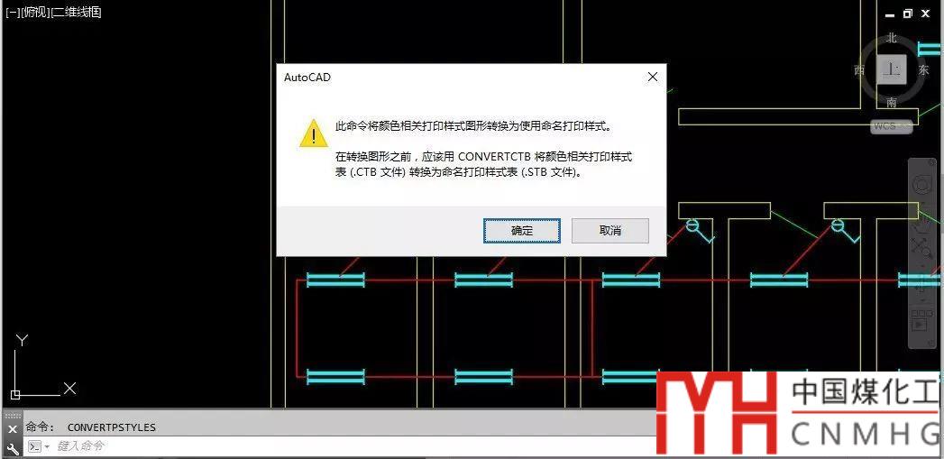 輸入convertpstyles命令,回車,軟件會彈出一個提示對話框,如圖所示。