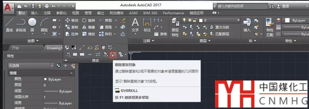 在AUTOCAD和浩辰CAD這些CAD中很早就有這樣的功能,叫消除重線或刪除重復對象,命令是OVERKILL,不知道是不是用這個功能人比較多,到了AUTOCAD高版本,這個命令反而變成了常規(guī)功能中,我們在修改菜單和面板中都能找到它,如下圖所示。