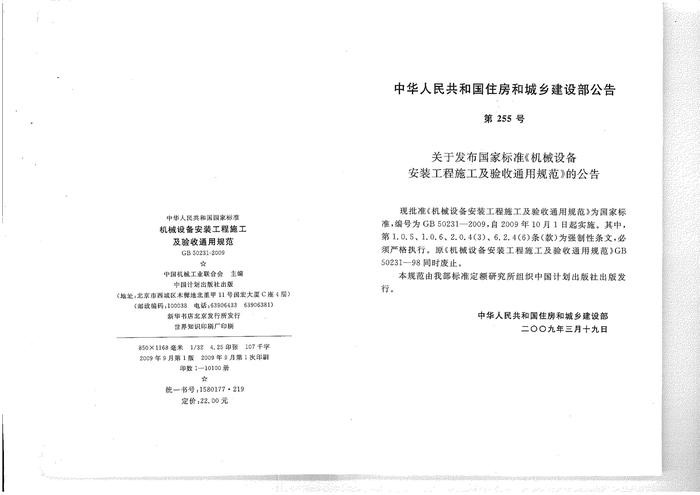 GB50231-2009機械設備安裝工程施工及驗收通用規(guī)范pdf