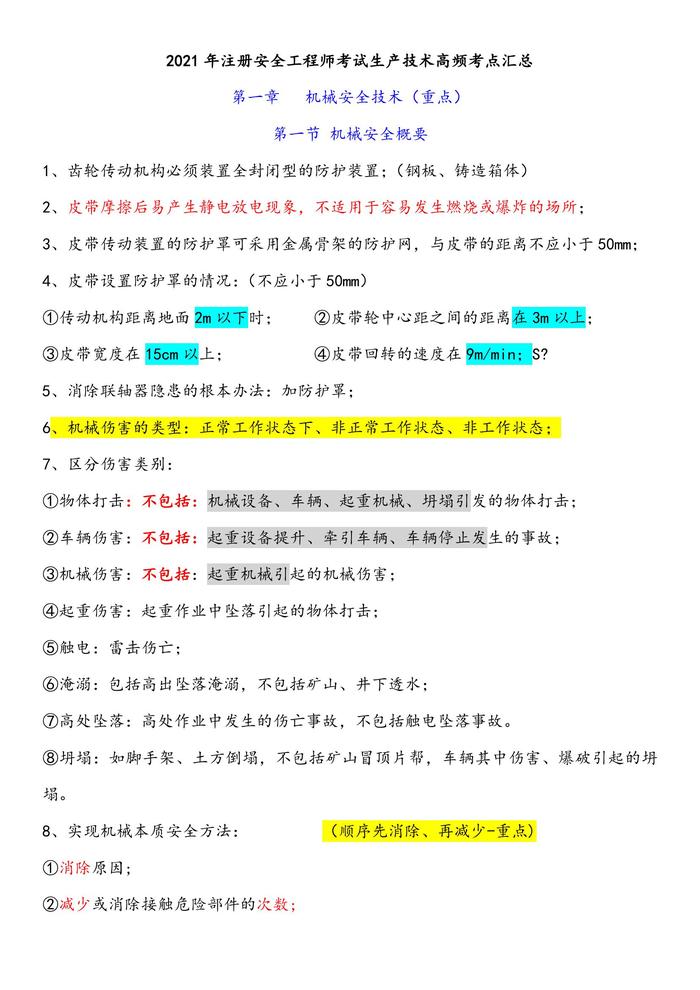 注冊安全工程師考試生產(chǎn)技術(shù)高頻考點(diǎn)匯總docx