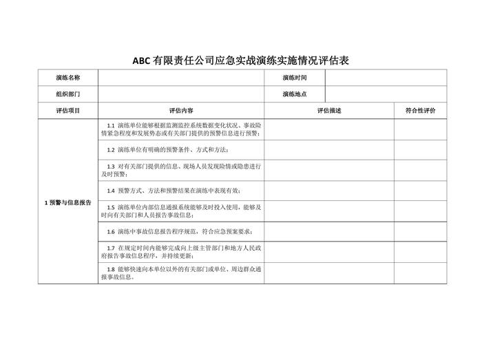 公司應(yīng)急施展演練實(shí)施情況評(píng)估表docx
