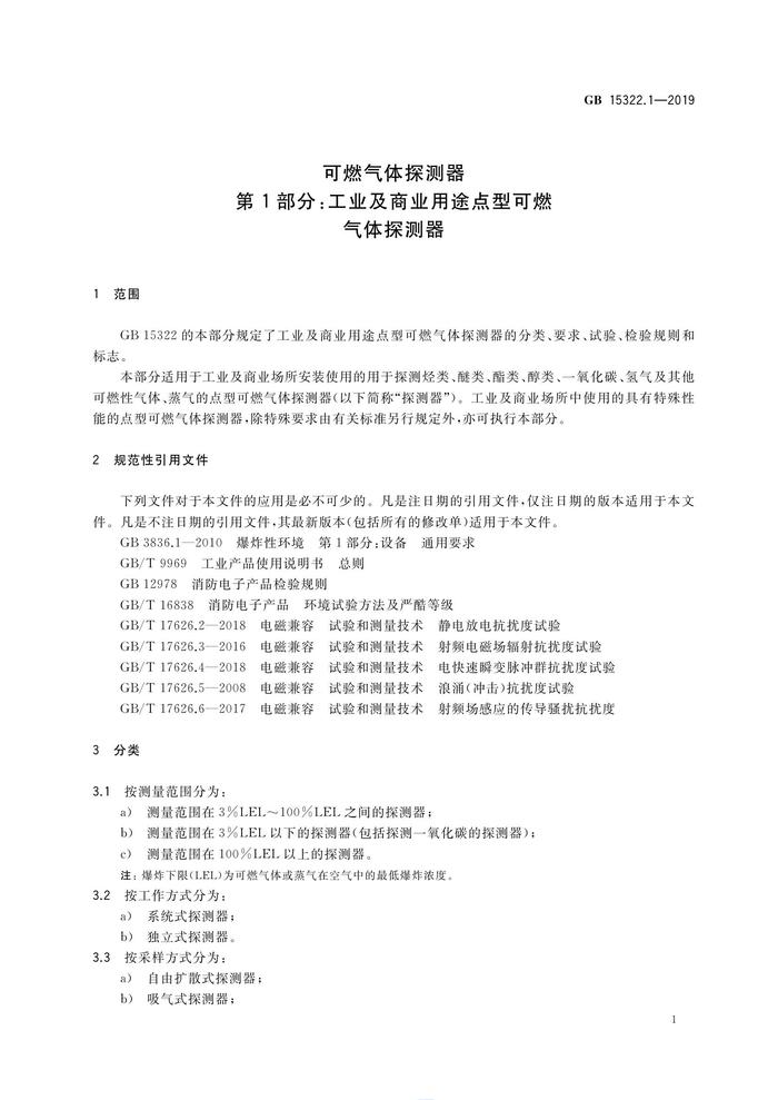 GB 153221-2019 可燃?xì)怏w探測器 第1部分工業(yè)及商業(yè)用途點(diǎn)型可燃?xì)怏w探測器pdf