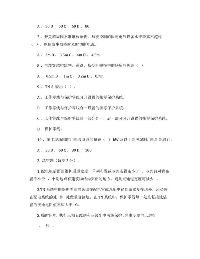 臨時(shí)用電培訓(xùn)內(nèi)容及試卷docx