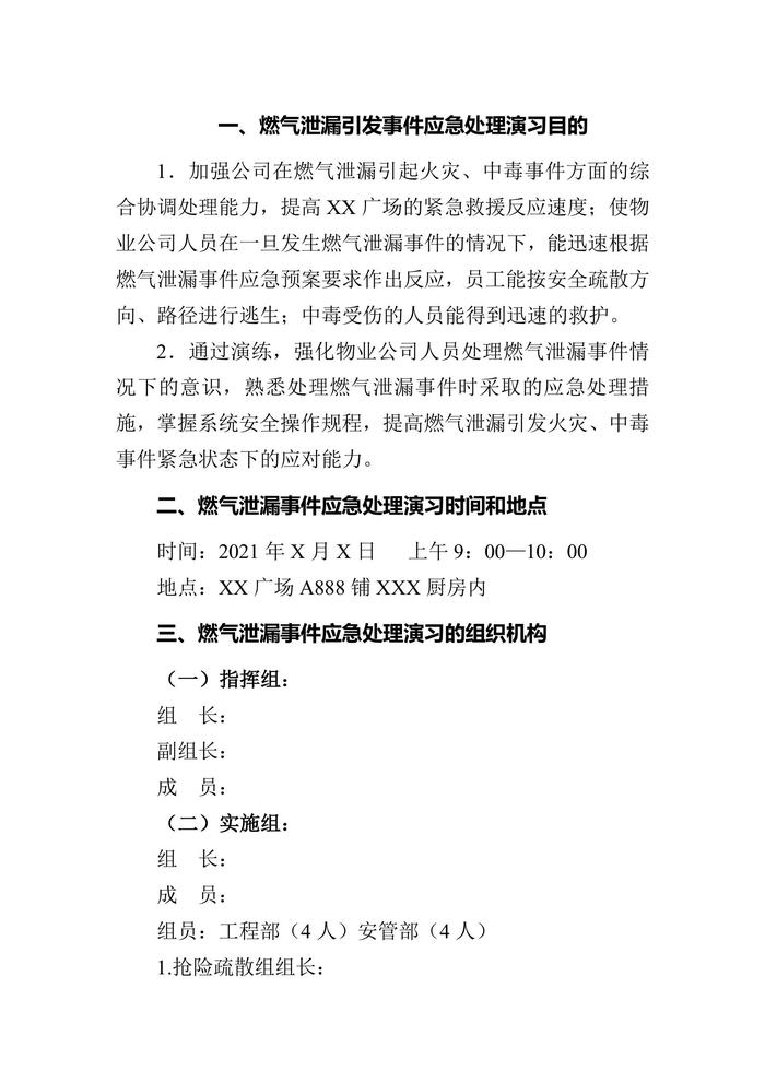 ~燃氣泄漏事件演習方案doc