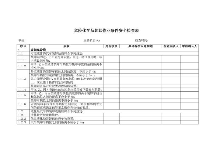 危險化學(xué)品裝卸作業(yè)條件安全檢查表doc