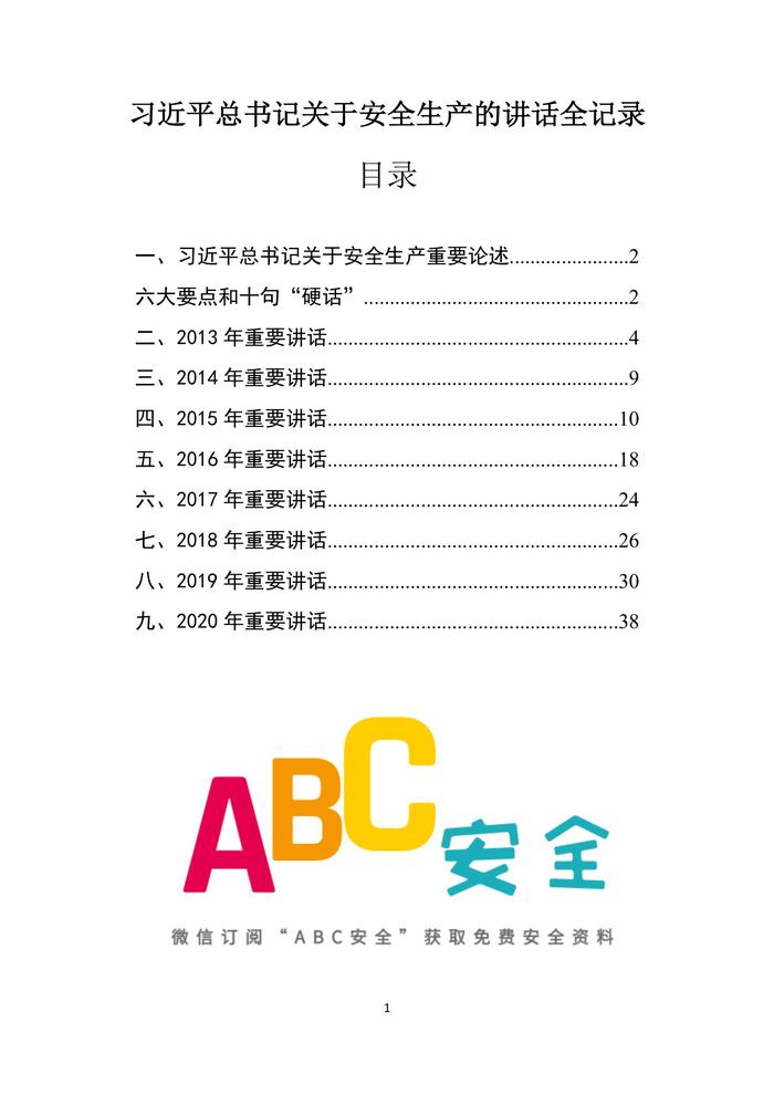 總書記2013-2020年關(guān)于安全生產(chǎn)的講話全記錄docx