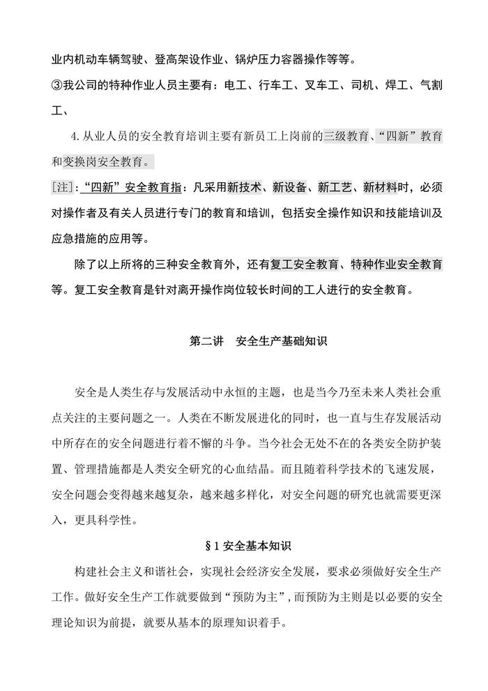 第1部分:新員工安全生產(chǎn)及安全教育培訓講義doc