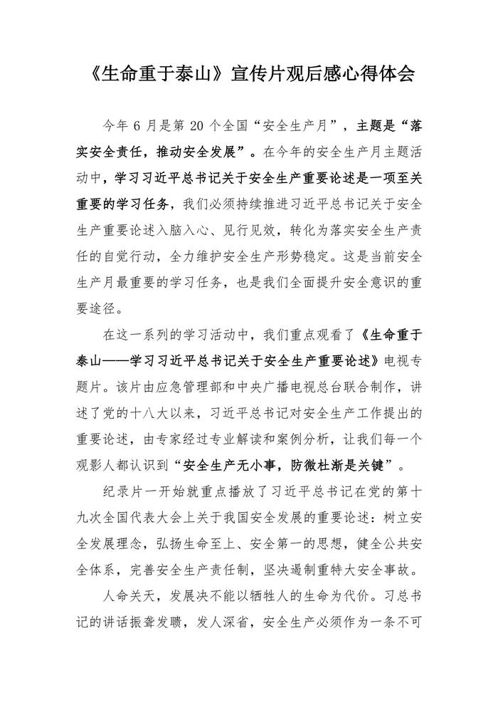 【征文】2021《生命重于泰山》宣傳片觀后感心得體會(huì)docx