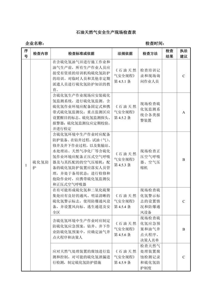 石油天然氣安全生產(chǎn)現(xiàn)場檢查表doc