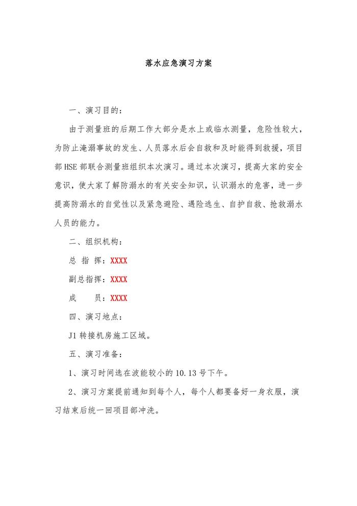 落水應(yīng)急演習(xí)方案docx