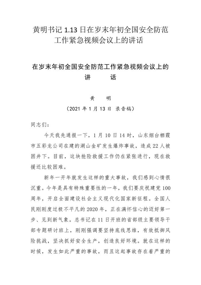 歲末年初全國安全防范工作緊急視頻會(huì)議上的講話(錄音稿)docx