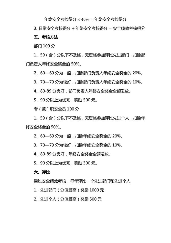 安全績(jī)效考核辦法模板docx