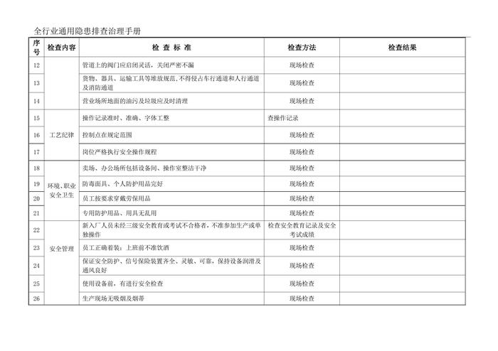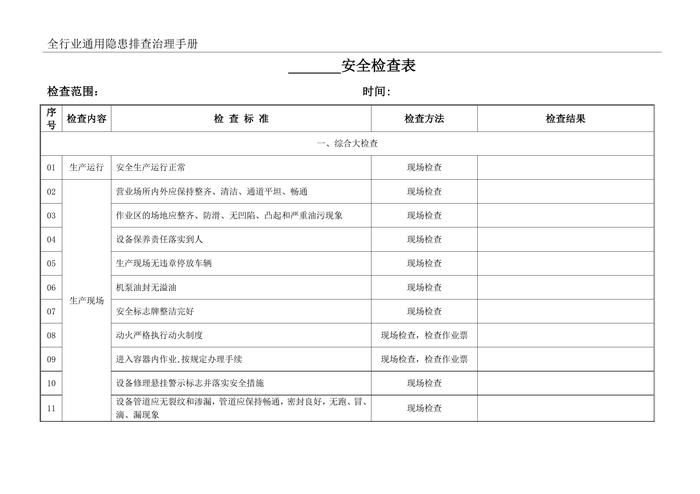 全行業(yè)通用隱患排查治理手冊檢查記錄(1)doc