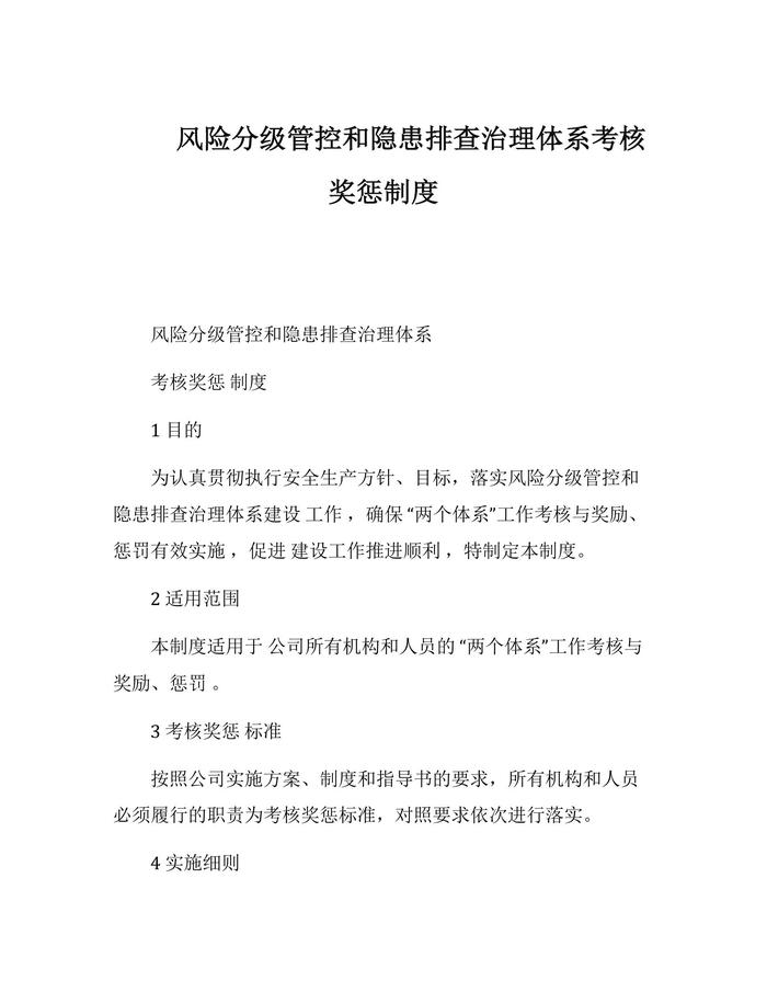 風險分級管控和隱患排查治理體系考核獎懲制度docx