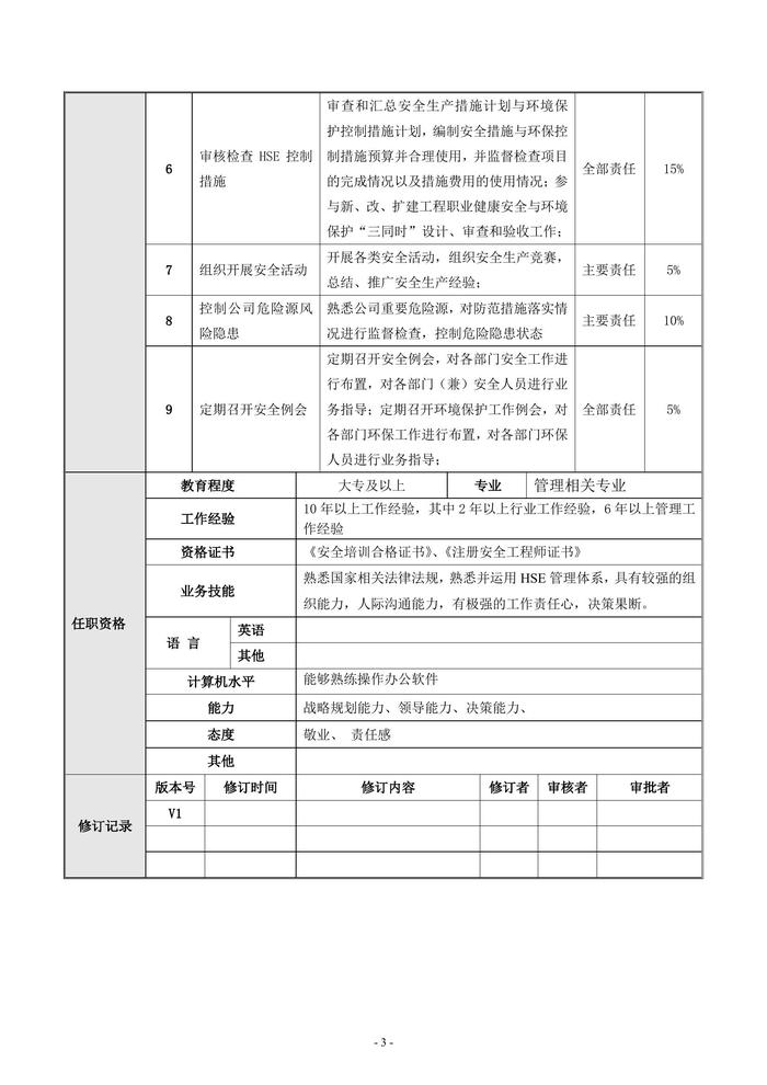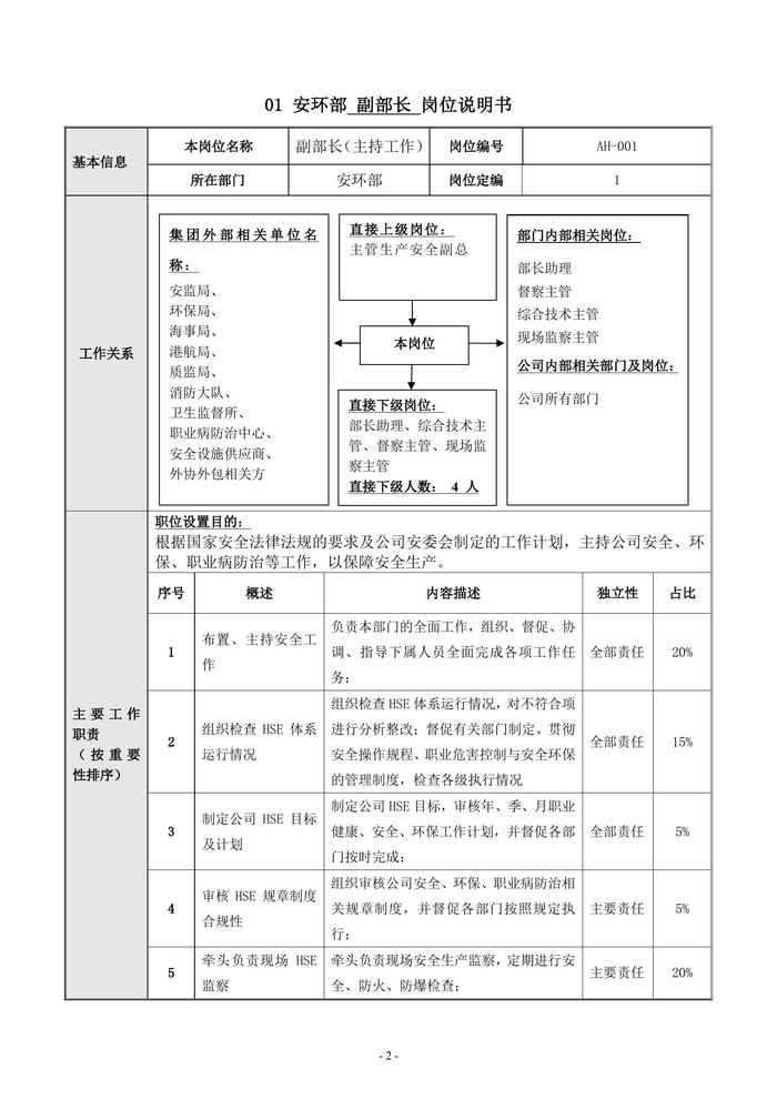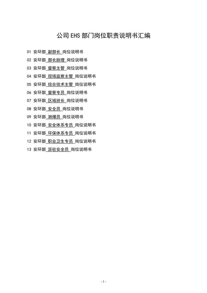 E20201026公司EHS部門崗位職責說明書匯編docx