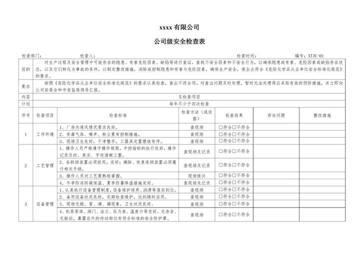 G202100829之安全標(biāo)準(zhǔn)化安全檢查表匯總(全套)doc