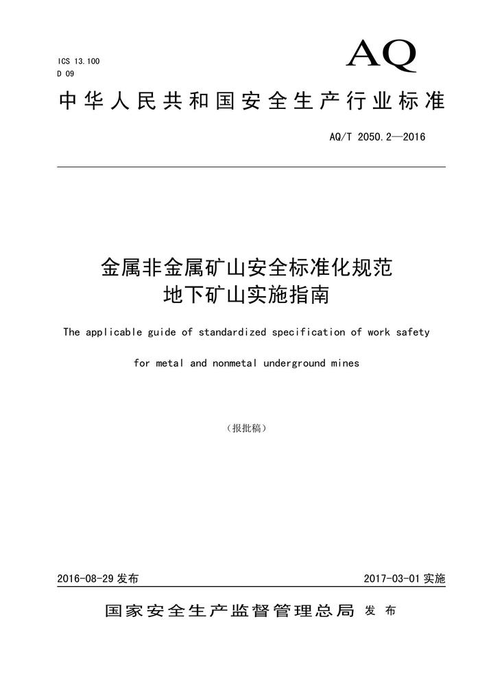 AQT 20502-2016 金屬非金屬礦山安全標(biāo)準(zhǔn)化規(guī)范 地下礦山實(shí)施指南pdf