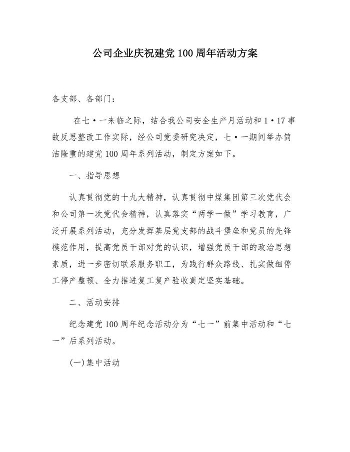 XX公司企業(yè)慶祝建黨100周年活動(dòng)方案docx