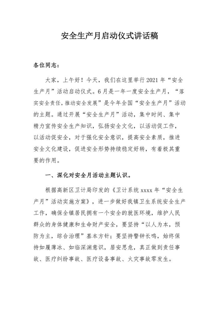安全生產(chǎn)月啟動儀式講話稿(1)docx