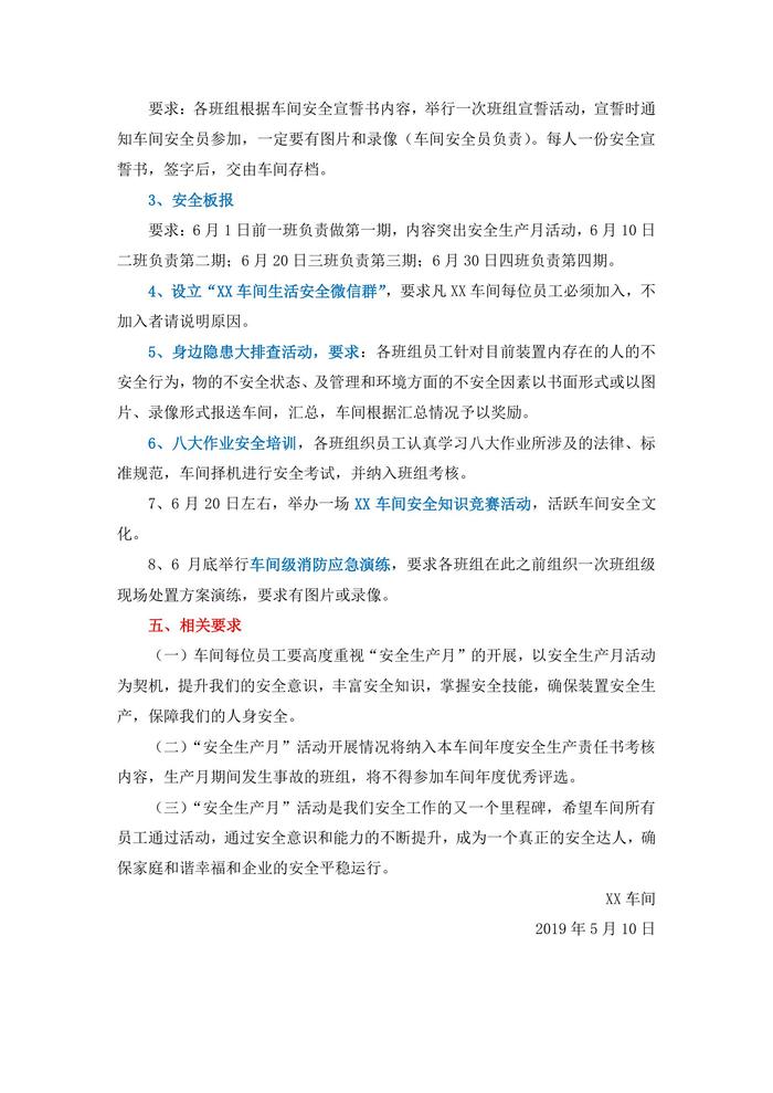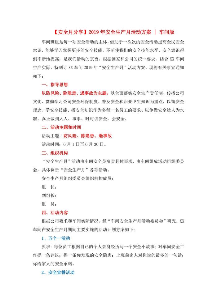 19年安全生產(chǎn)月活動(dòng)方案(車間版)docx