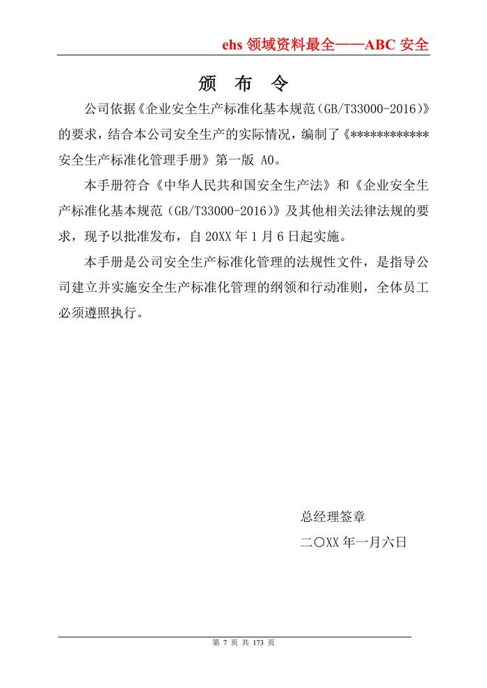 安全標準化管理手冊(通用模板)doc