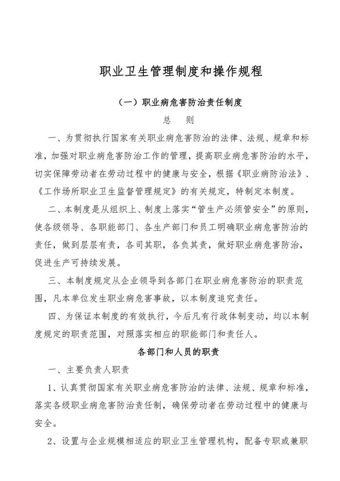 職業(yè)衛(wèi)生管理制度匯編和操作規(guī)程(標(biāo)準(zhǔn)通用版29頁)(1)doc