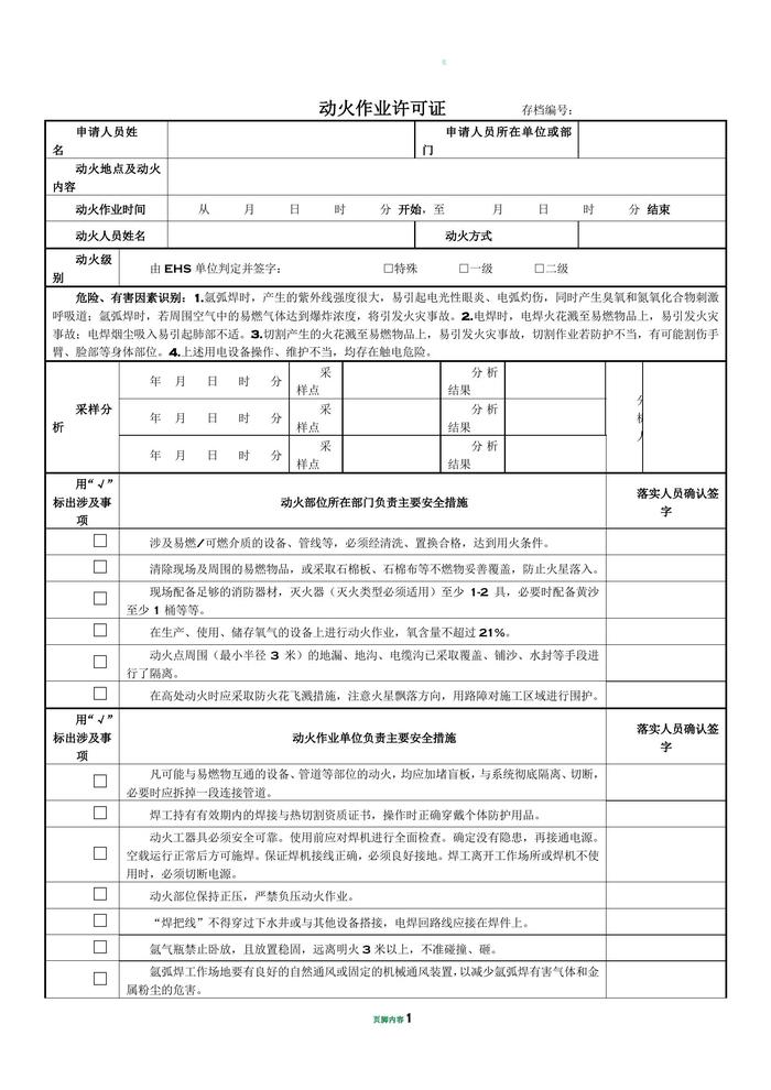 動(dòng)火作業(yè)許可證(修訂版)doc