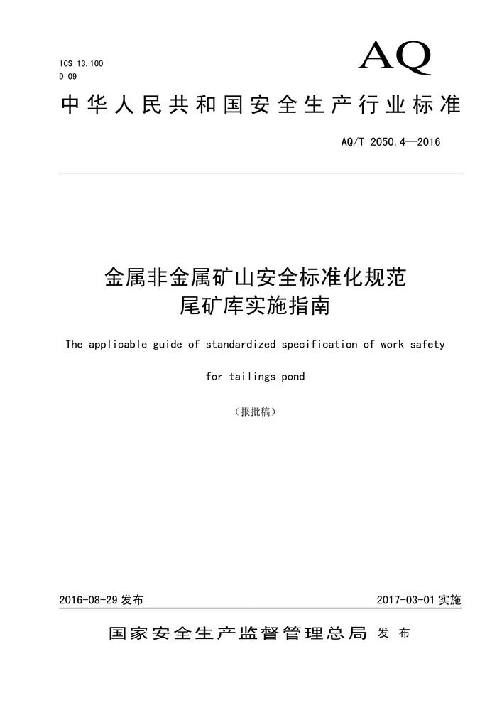 AQT 20504-2016 金屬非金屬礦山安全標(biāo)準(zhǔn)化規(guī)范 尾礦庫實(shí)施指南pdf