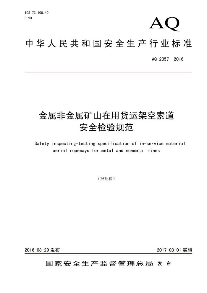 AQ 2057-2016 金屬非金屬礦山在用貨運(yùn)架空索道安全檢驗規(guī)范pdf