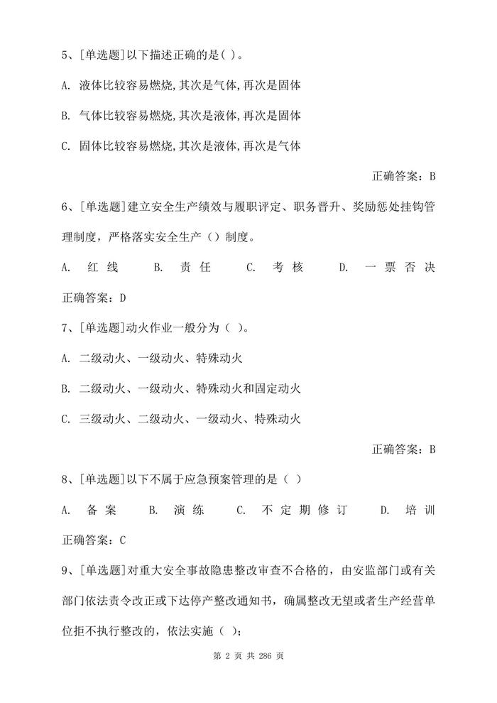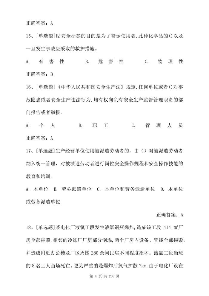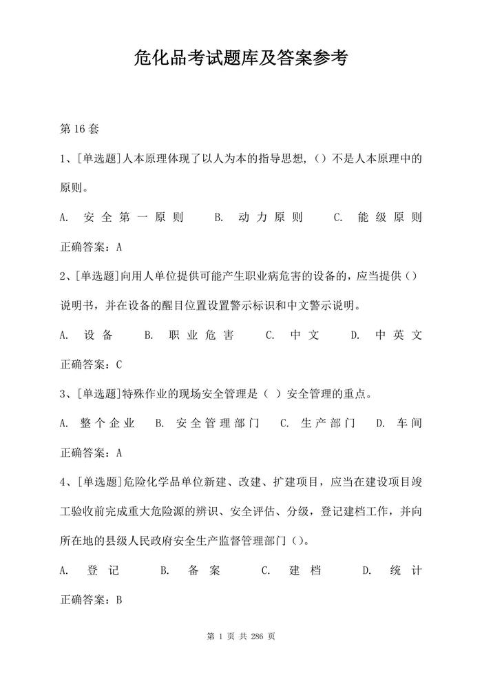 最全危化品考試題庫及答案參考(286頁)docx