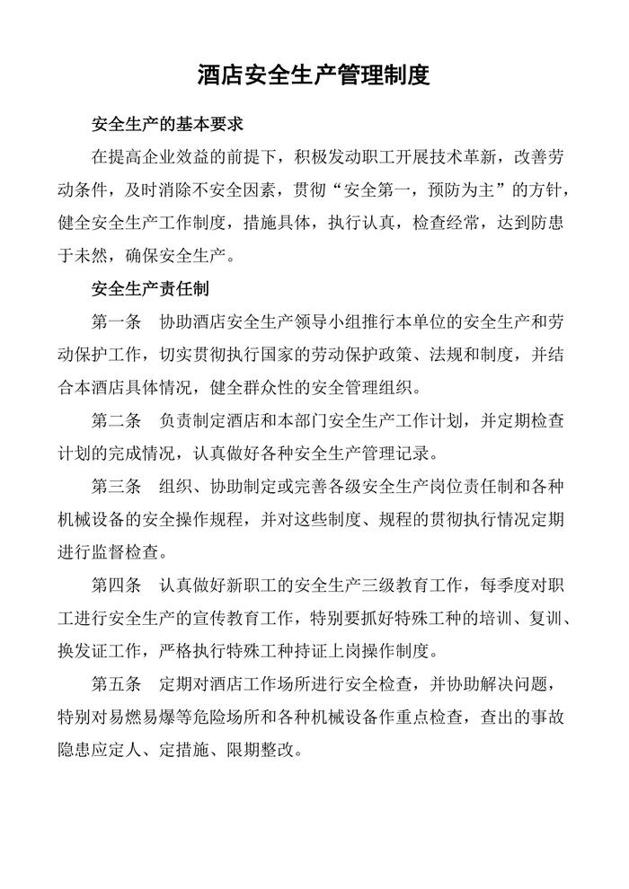 酒店安全生產(chǎn)管理制度(1)doc