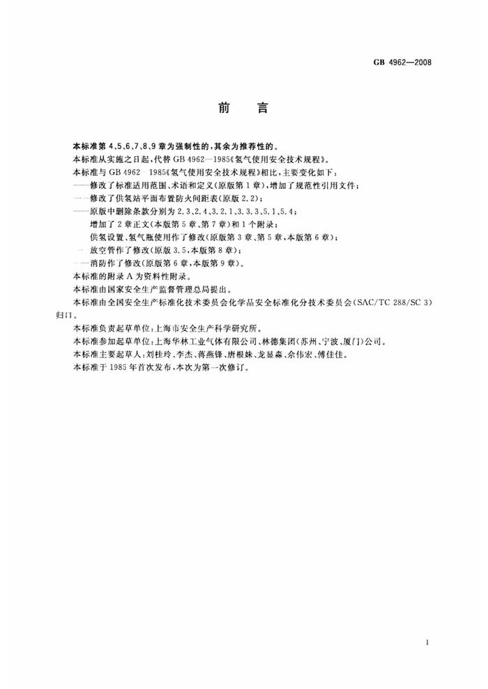 GB 4962-2008 氫氣使用安全技術(shù)規(guī)程pdf