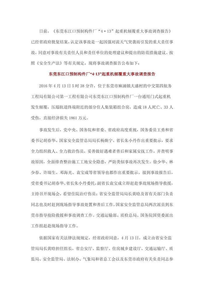 東莞東江口預(yù)制構(gòu)件廠“4?13”起重機(jī)傾覆重大事故調(diào)查報(bào)告docx