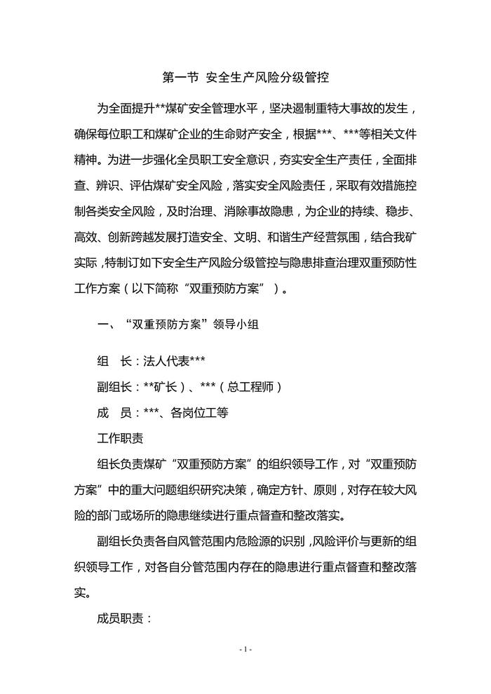 煤礦“雙重預(yù)防”工作方案范本doc