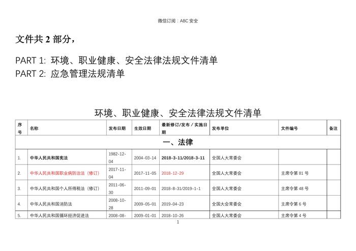 環(huán)境、職業(yè)健康、應(yīng)急管理法規(guī)清單docx