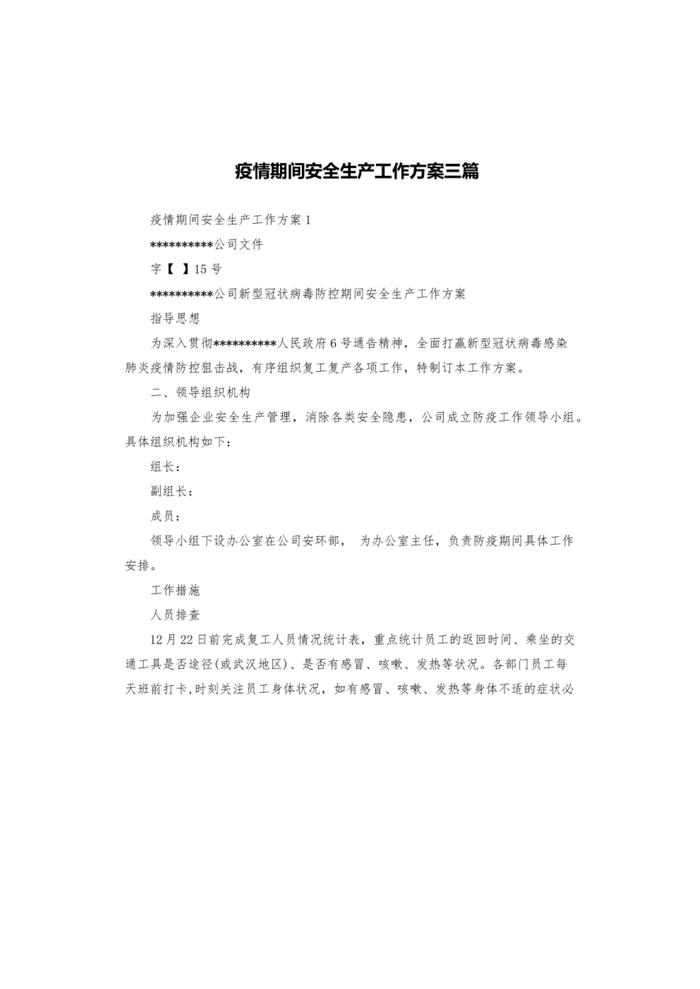 C20220403~疫情期間安全生產(chǎn)工作方案三篇pdf